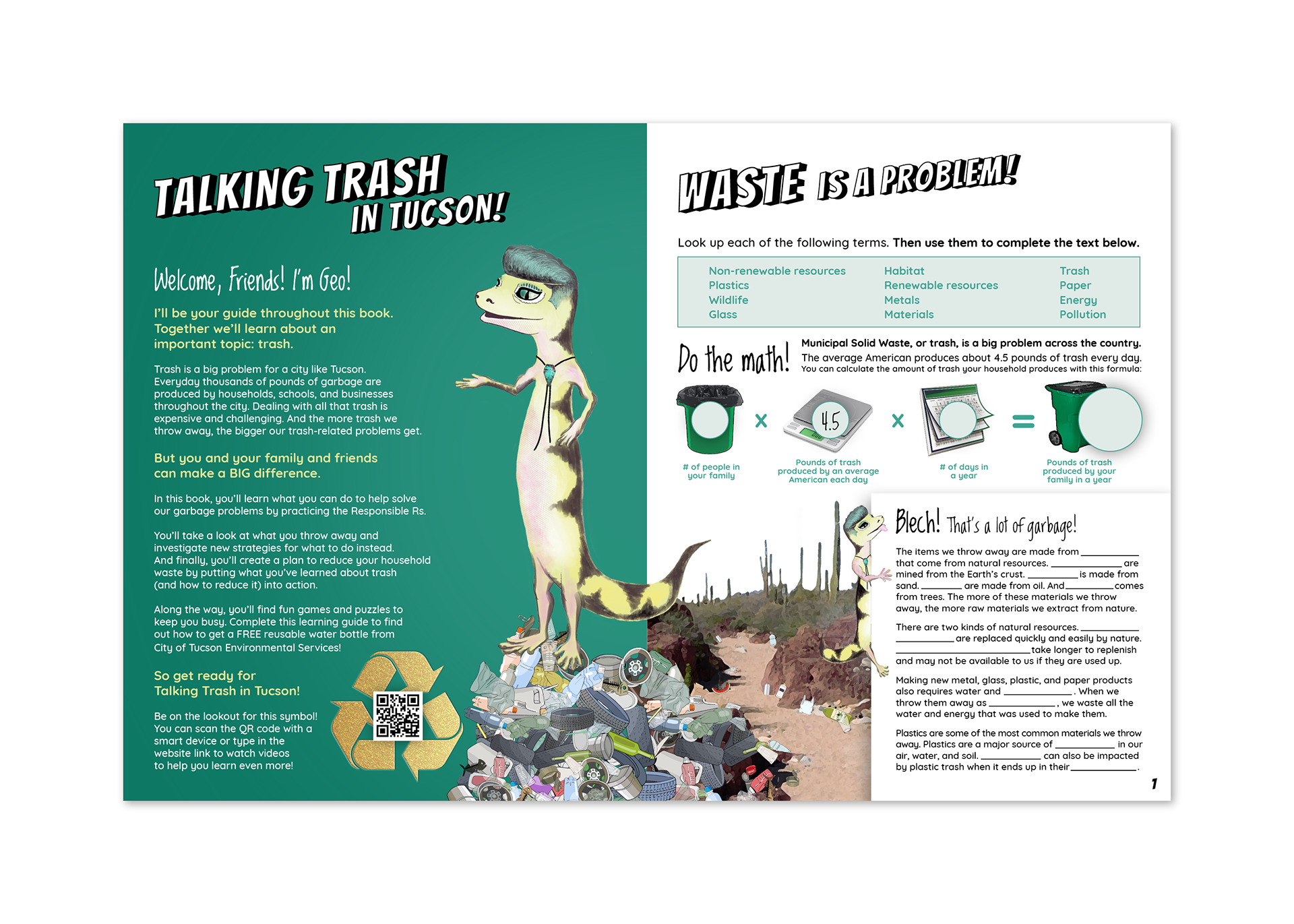 The Department of Environmental Services of The City of Tucson works to educate kids about the importance of conservation. This activity book focuses on how to reduce trash and waste in a fun way for kids ages 10–13.